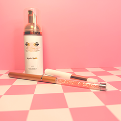 Elevate lash care with our Rose Water Lash Shampoo Kit. Infused with soothing rose water, this gentle, oil-free formula cleanses away dirt, oils, and makeup while nourishing natural lashes and extensions. The kit includes a soft cleansing brush for effortless application, leaving lashes fresh, clean, and hydrated. Perfect for pre-treatment prep or daily aftercare. Indulge your lashes with the luxury of rose water!